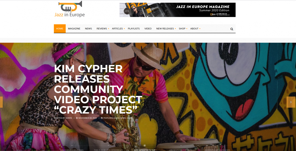 My thanks to Jazz In Europe for choosing ‘Crazy Times’ as their featured video. Kim Cypher releases community video project “Crazy Times”