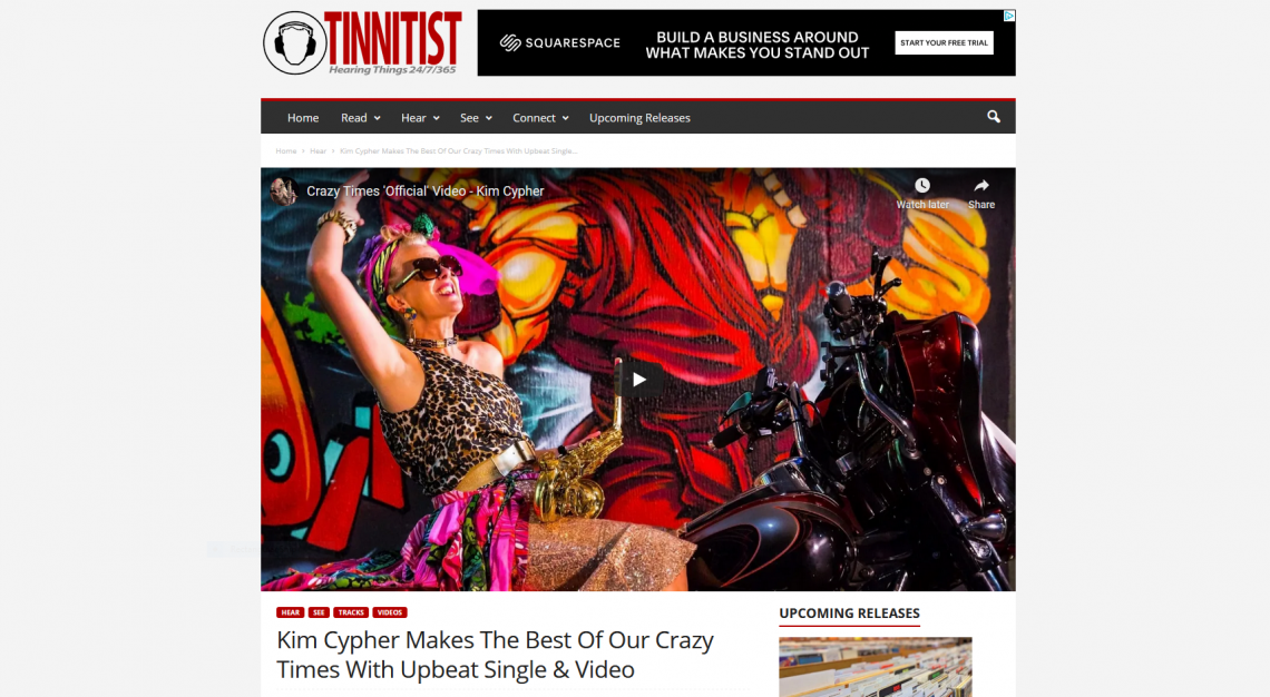 I am so thrilled to have ‘Crazy Times’ featured by the most widely-read music blog in Canada,Tinnitist – “The U.K. jazz artist is spreading positivity, hope and escapism with her latest cut”. Huge thanks to Darryl Sterdan for this: Kim Cypher Makes The Best Of Our Crazy Times With Upbeat Single & Video