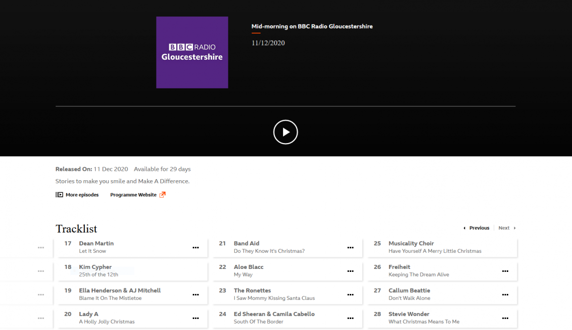 So thrilled to have my new Xmas song included in a BBC broadcast together with some absolute legends and festive classics including Dene Martin, Band Aid and Stevie Wonder 🙂