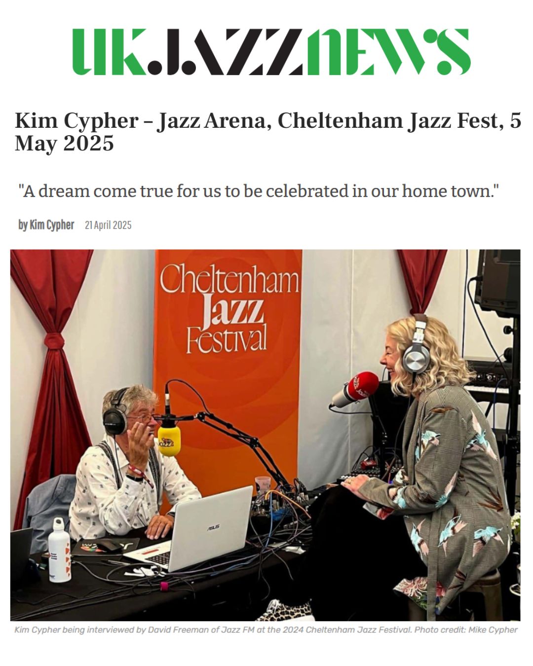 A wonderful review of ‘Kim Cypher at Ronnie Scott’s’ https://jazzineurope.mfmmedia.nl/2024/06/live-review-kim-cypher-at-ronnie-scotts/ “Kim, along with her brilliant musicians, brought an absolute abundance of joy to Ronnie’s… …the connection and love she has with the audience has a level of authenticity rarely seen and this is reciprocated in abundance… The energy and excitement after the gig was incredible… …Kim is adored by so many and it was a really wonderful thing to …