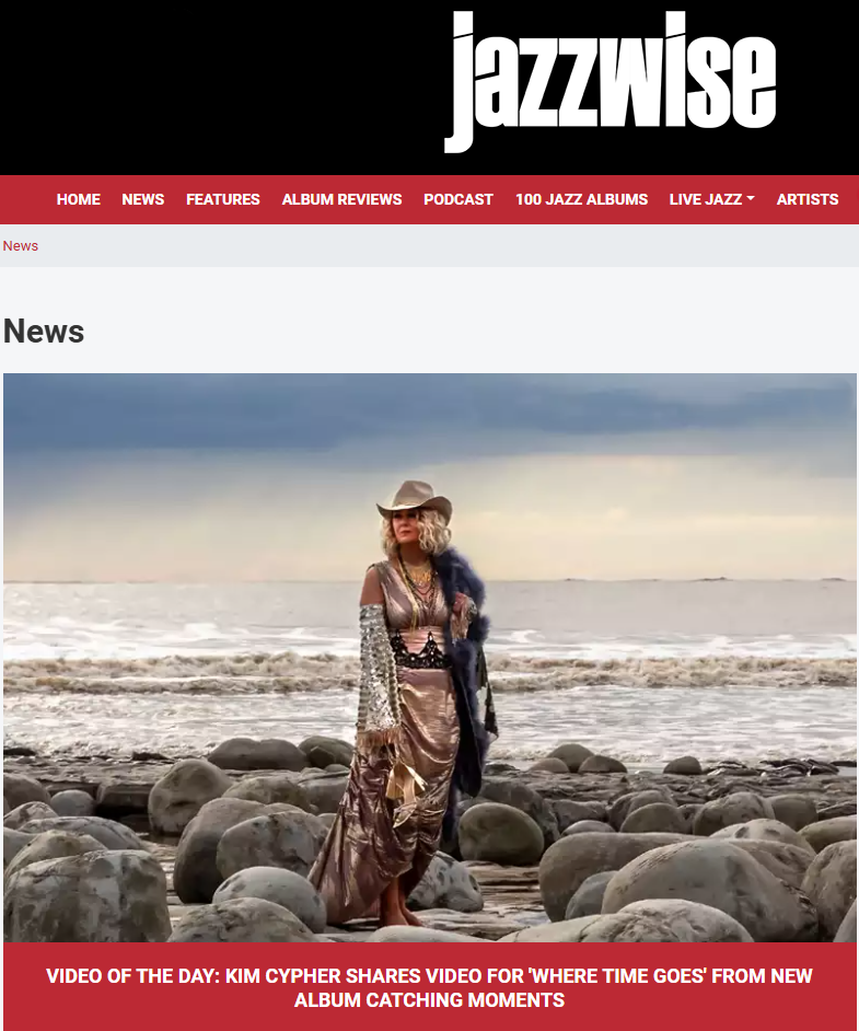 Jazzwise – Video of the Day 11th June 2024 | News, Press/Reviews Jazzwise feature – ‘Where Time Goes’ – Video of the Day! https://www.jazzwise.com/news/article/video-of-the-day-kim-cypher-shares-video-for-where-time-goes-from-new-album-catching-moments