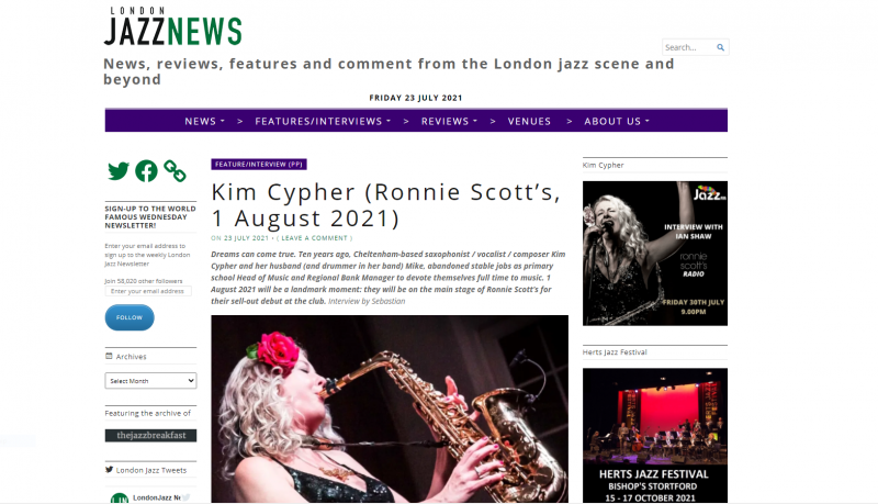 London Jazz News Feature 23rd July 2021 | News, Press/Reviews Such a wonderful feature in London Jazz News…Dreams can come true… Kim Cypher (Ronnie Scott’s, 1 August 2021) – News, reviews, features and comment from the London jazz scene and beyond (londonjazznews.com)